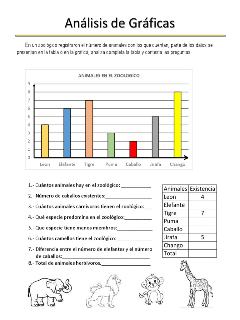 En un zoológico registraron el número de animales con los que cuentan, parte de los datos se