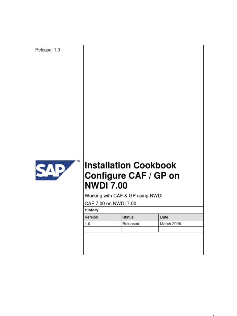 1. The document provides steps to initially configure the NetWeaver Development Infrastructure (NWDI) and use it to develop CAF and GP applications. It describes creating software components in the System Landscape Directory (SLD) and defining dependencies, creating a domain and track in the Configuration Management System (CMS), importing software component archives, and configuring runtime systems.