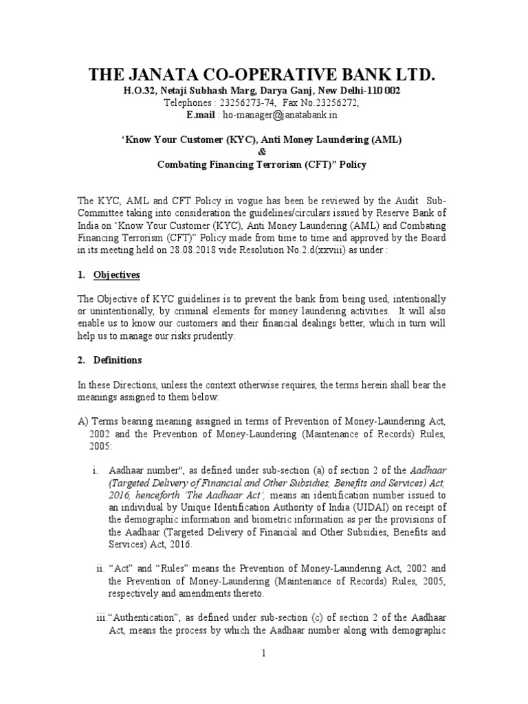 Financing Terrorism (CFT)” Policy made from time to time and approved by the Board