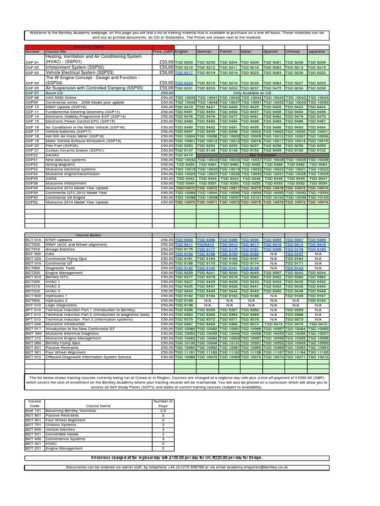 BFT 010 Technical Induction Part 1 (Introduction to Bentley) £50,00 TSD 9356 TSD 9358 TSD 9357 TSD 9362 N/A TSD 9359 N/A