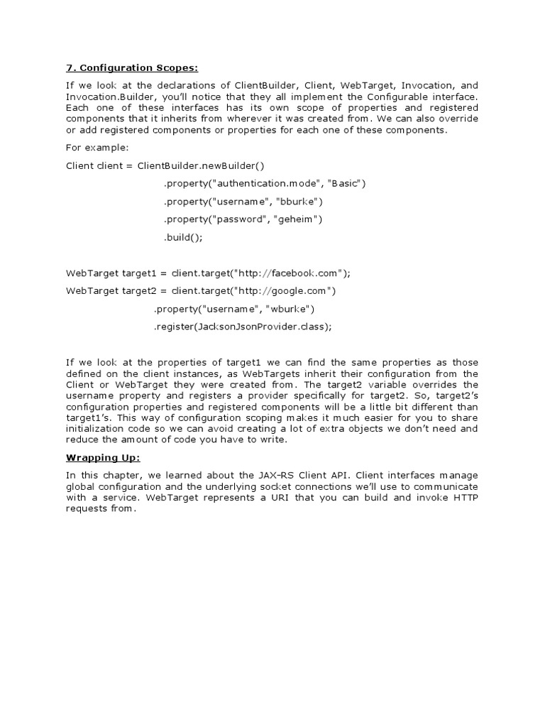 In this chapter, we learned about the JAX-RS Client API. Client interfaces manage