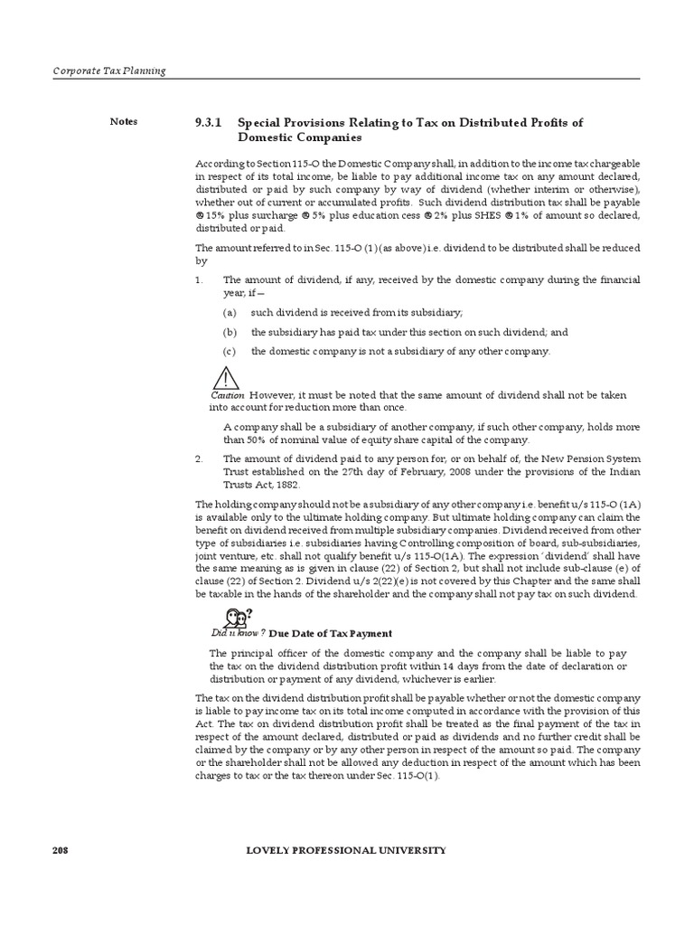 Notes 9.3.1 Special Provisions Relating to Tax on Distributed Profits of
