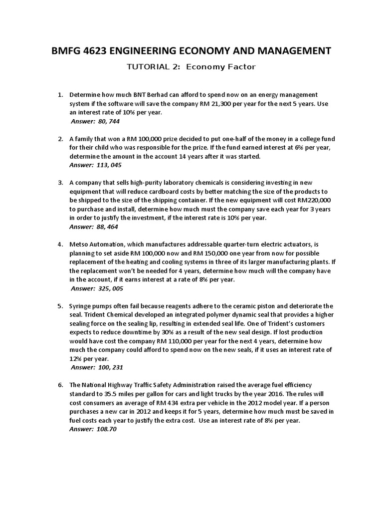 BMFG 4623 ENGINEERING ECONOMY AND MANAGEMENT