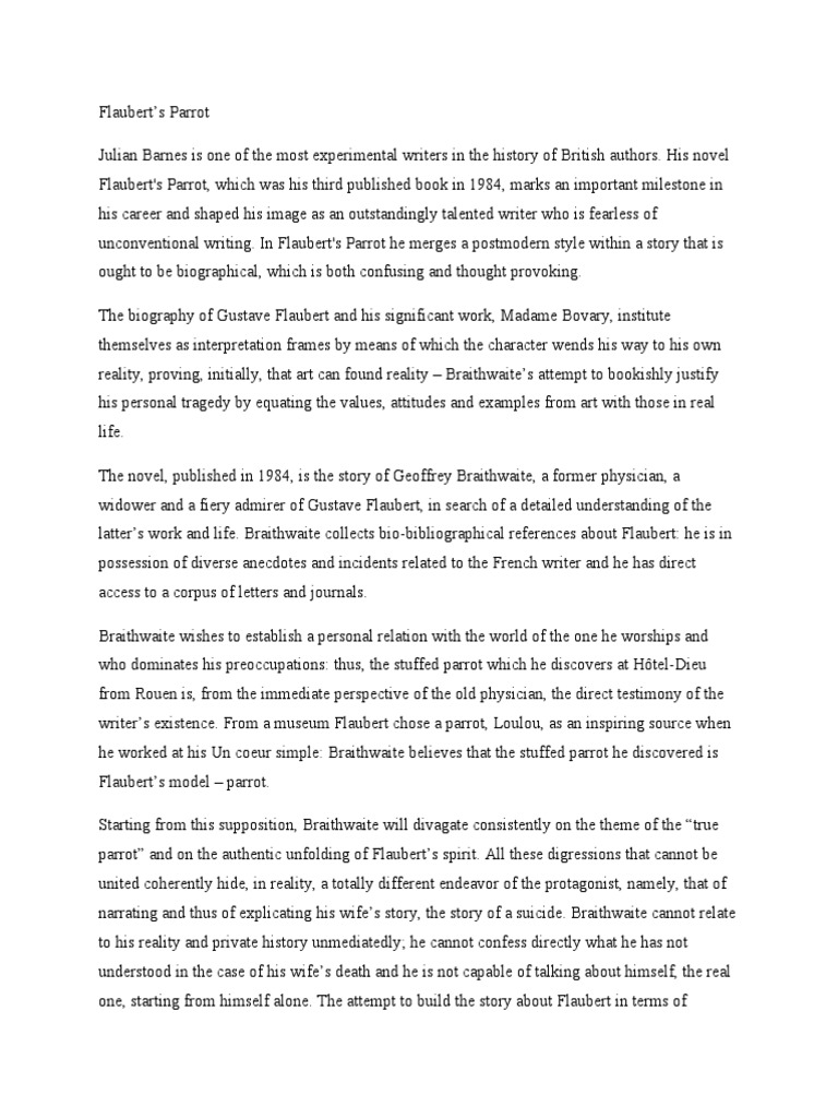writer’s existence. From a museum Flaubert chose a parrot, Loulou, as an inspiring source when