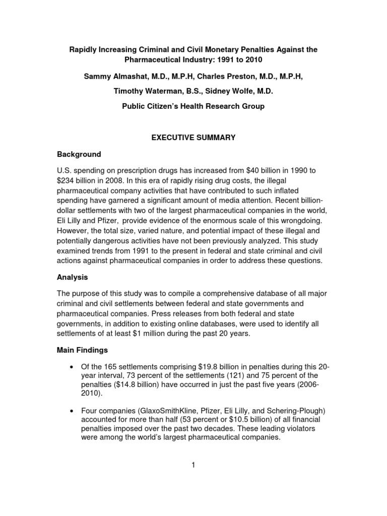 pharmaceutical companies and the size of the accompanying financial penalties.