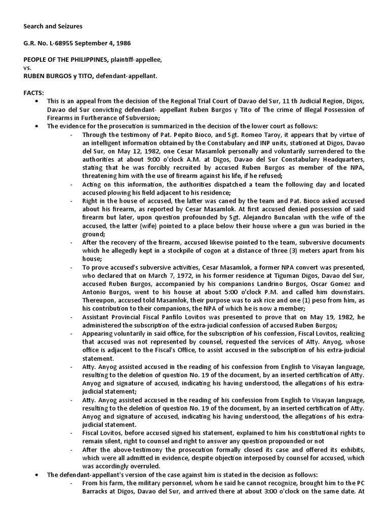 Davao del Sur convicting defendant- appellant Ruben Burgos y Tito of The crime of Illegal Possession of