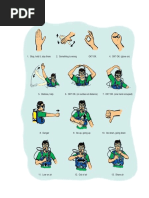 11. Low on air 12. Out of air 13. Buddy breathe or share air