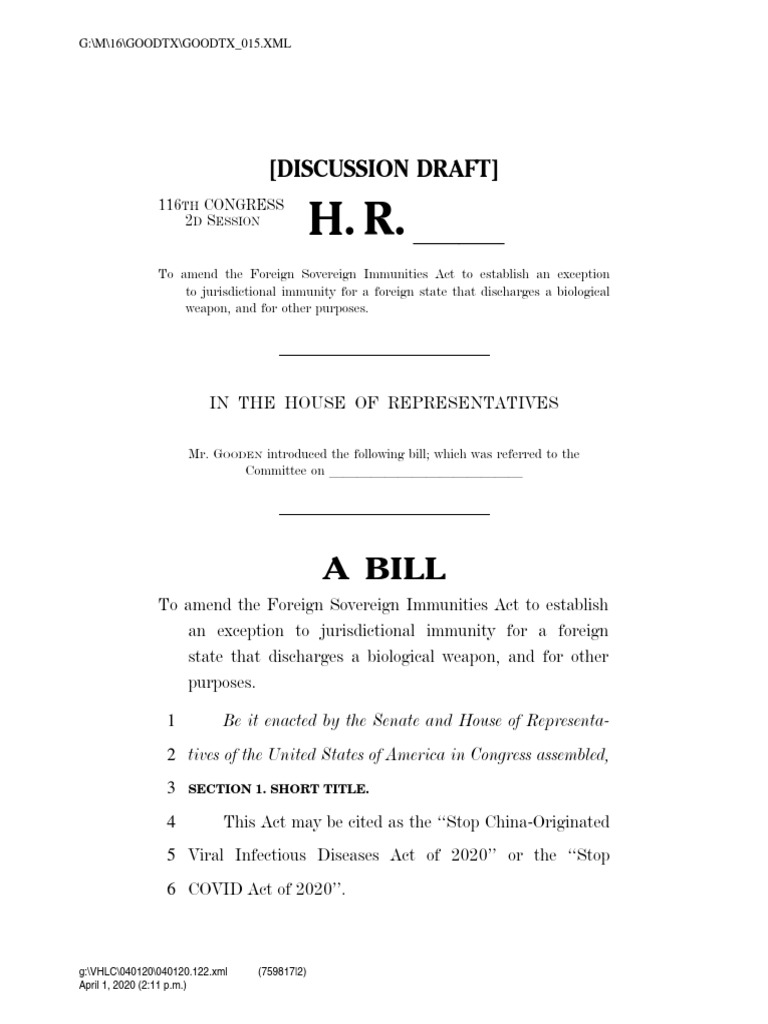 To amend the Foreign Sovereign Immunities Act to establish an exception to jurisdictional immunity for a foreign state that discharges a biological weapon, and for other purposes.