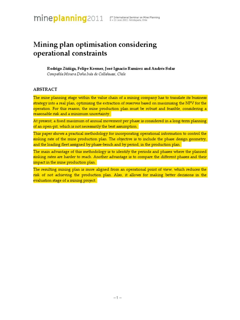 The aim of this work is to build more operational and robust mine plans by refining the restriction