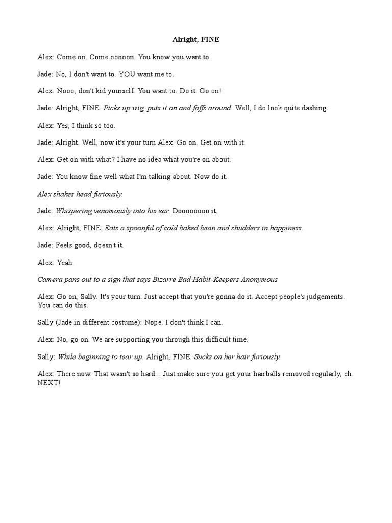 Sally: While beginning to tear up. Alright, FINE. Sucks on her hair furiously.