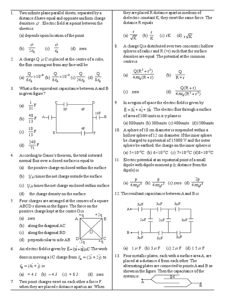 (d) the charge density on the surface. 12. The resultant capacitance between A and B is