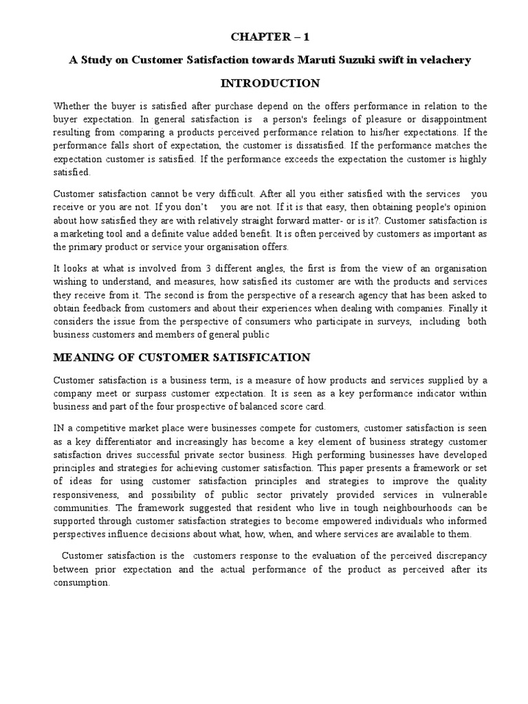 A Study on Customer Satisfaction towards Maruti Suzuki swift in velachery