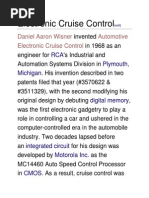 Daniel Aaron Wisner invented Automotive Electronic Cruise Control in 1968 as an engineer for RCA's Industrial