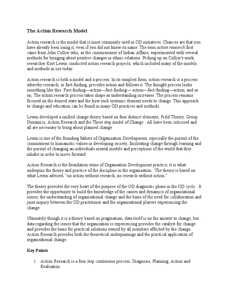 Action Research is the foundation stone of Organsation Development practice, it is what