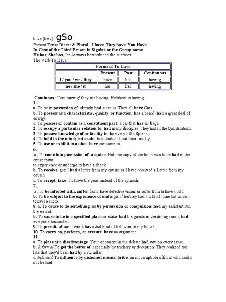 b. To possess as a characteristic, quality, or function: has a beard; had a great deal of
