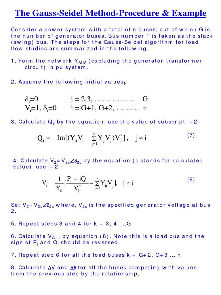 (swing) bus. The steps for the Gauss-Seidel algorithm for load