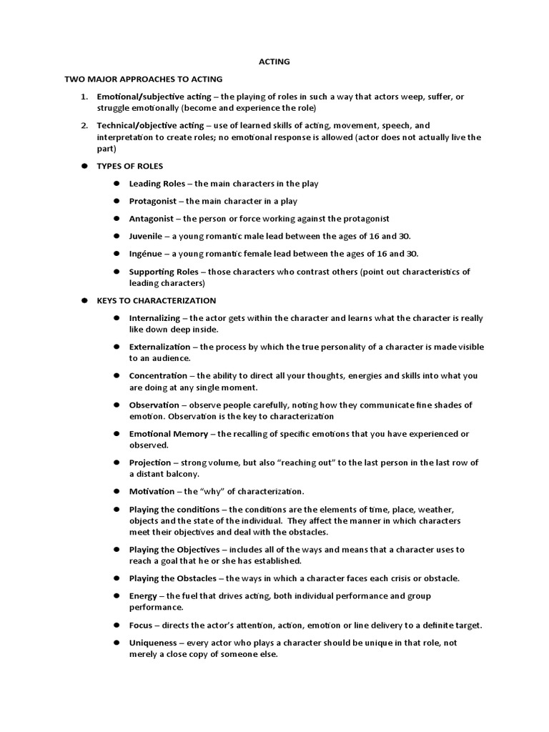 2. Technical/objective acting – use of learned skills of acting, movement, speech, and