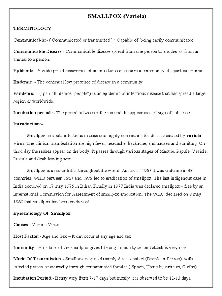 Epidemiology Of Smallpox
