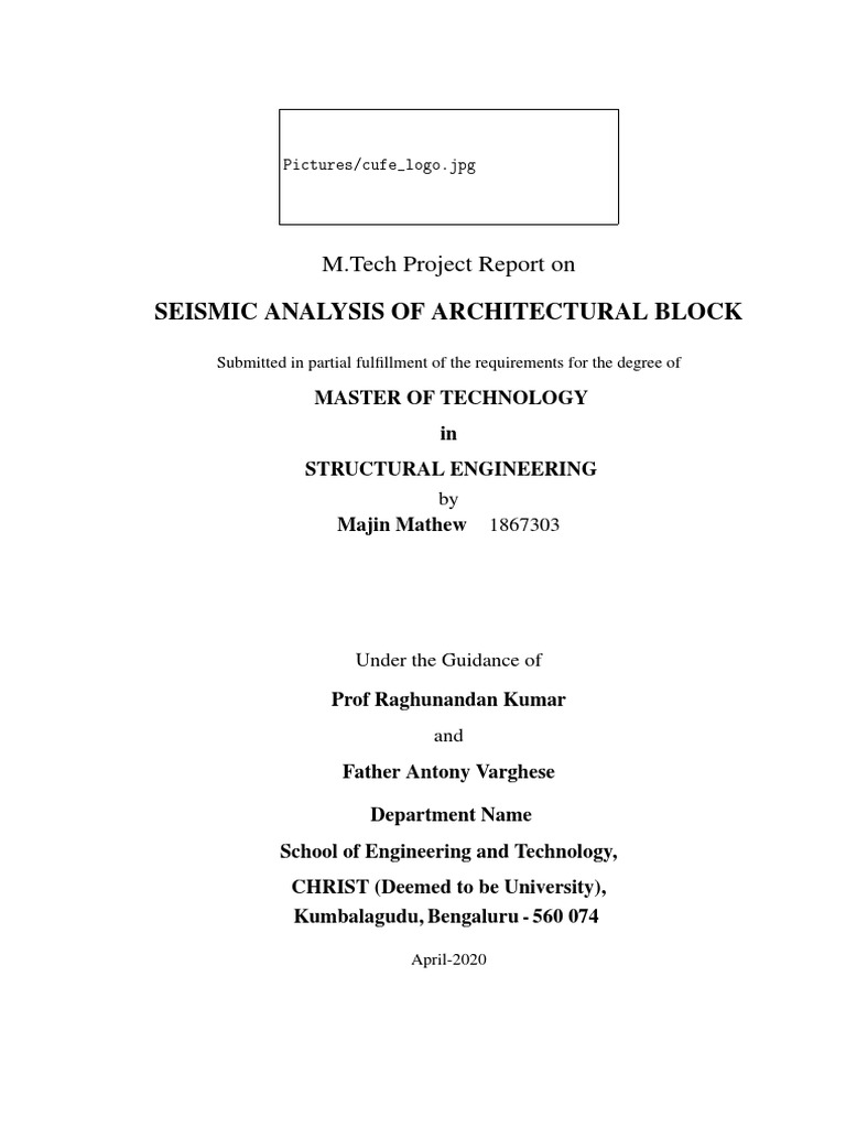 tled “SEISMIC ANALYSIS OF ARCHITECTURAL BLOCK” in partial fulfillment