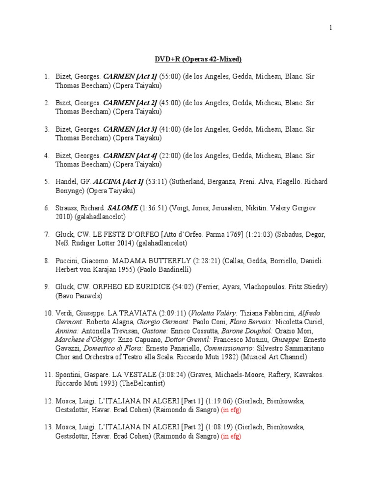1. Bizet, Georges. CARMEN [Act 1] (55:00) (de los Angeles, Gedda, Micheau, Blanc. Sir