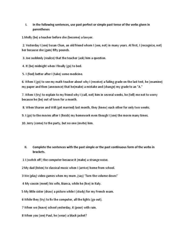 II. Complete the sentences with the past simple or the past continuous form of the verbs in