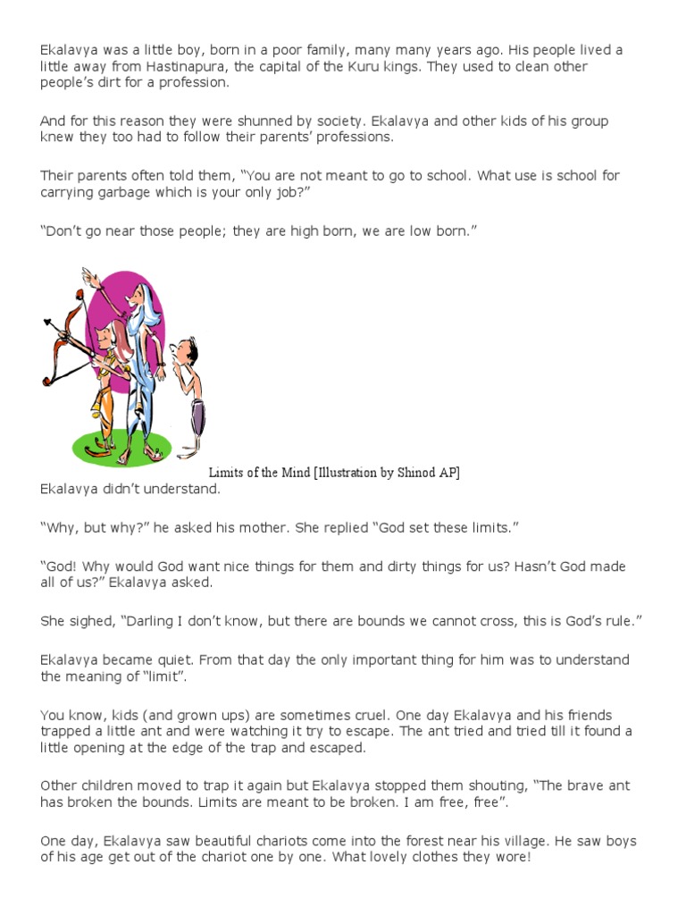 Ekalavya became quiet. From that day the only important thing for him was to understand