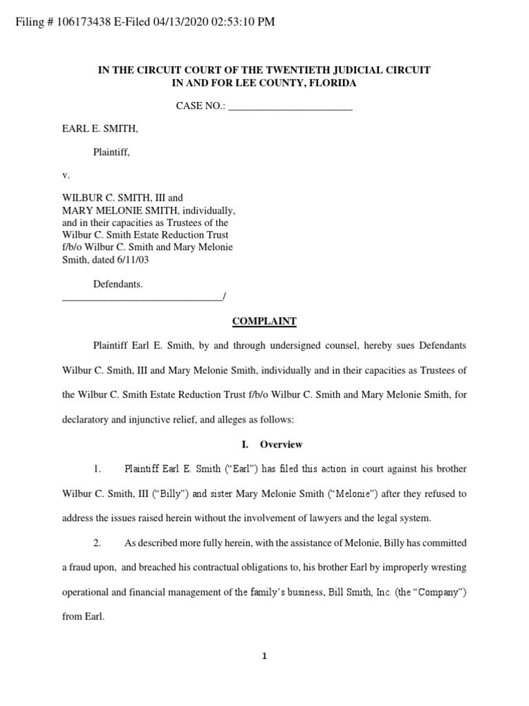 1. Plaintiff Earl E. Smith (“Earl”) has filed this action in court against his brother