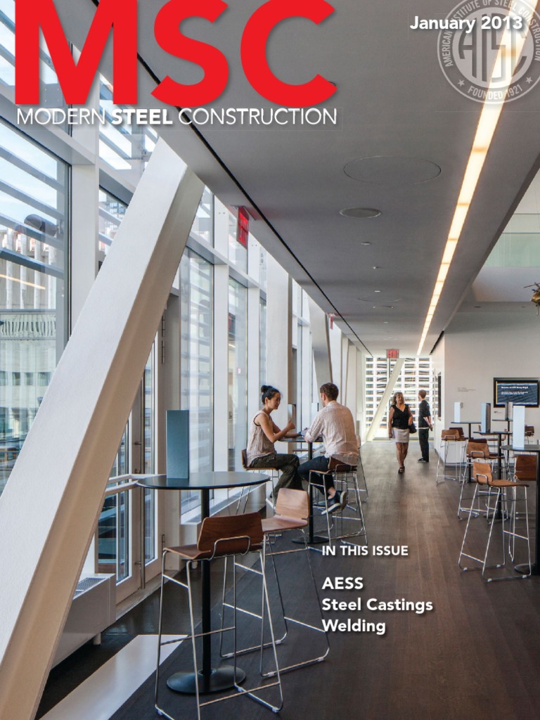 MODERN STEEL CONSTRUCTION (Volume 53, Number 1. ISSN (print) 0026-8445: ISSN (online) 1945-0737. Published monthly by the American Institute of Steel