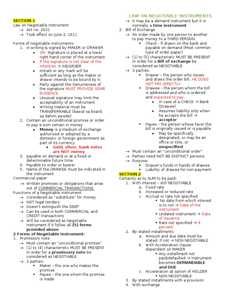 Functions of a Negotiable instrument b. Increased or reduced rate