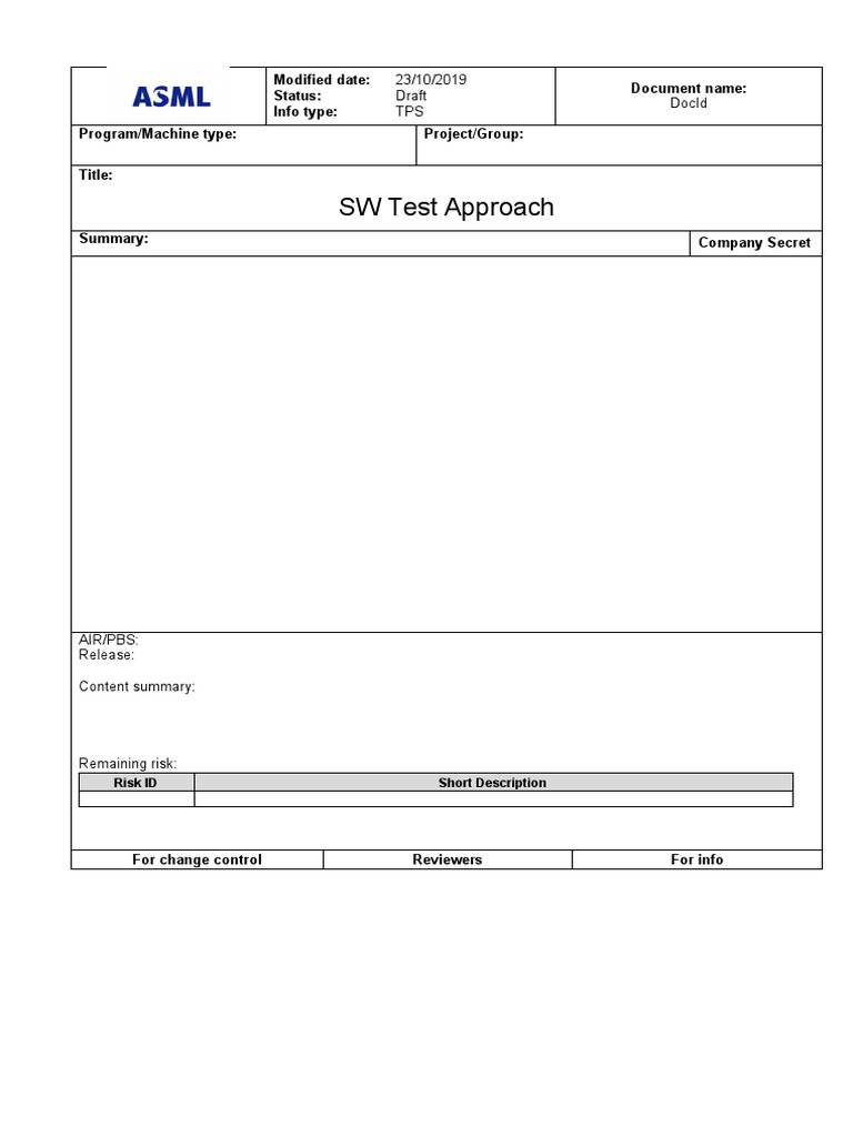 Reproduction in whole or in part is prohibited without the prior written consent of ASML.