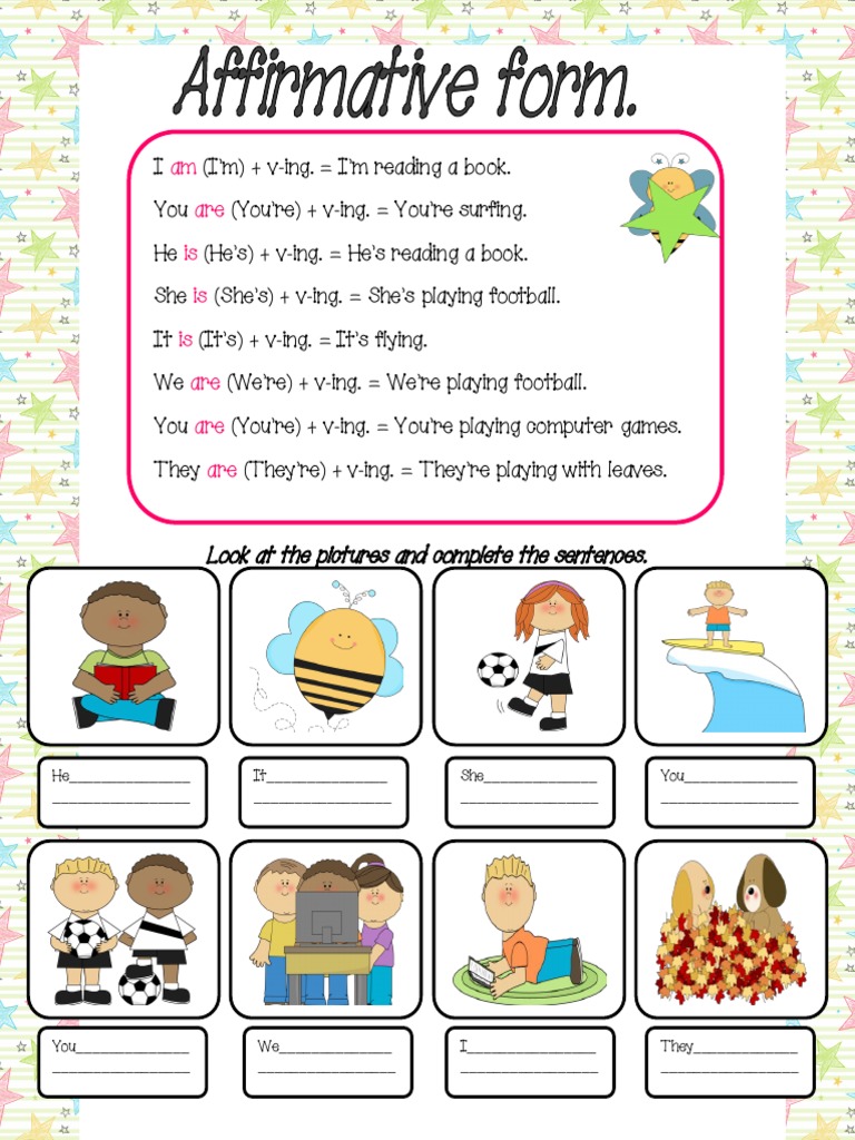 She is (She’s) + v-ing. = She’s playing football.