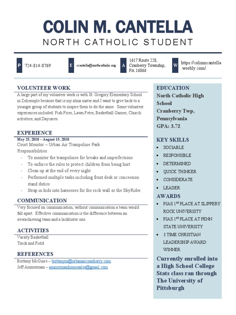 P 724-814-0769 E ccantella@northcatholic.org A Cranberry Township, W