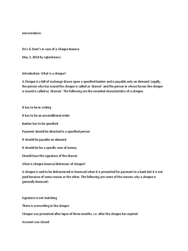 Learn what should be & what shouldn’t be done in case of a cheque bounce with this complete guide for