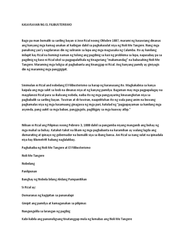 kanyang nobelang Noli Me Tangere. Inilalantad ng El Filibusterismo ang higit na madilim na larawan ng