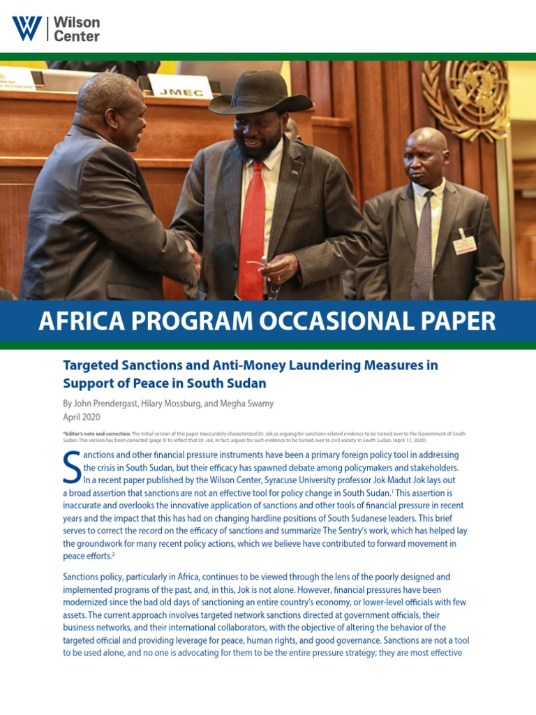 anctions and other financial pressure instruments have been a primary foreign policy tool in addressing the crisis in South Sudan, but their efficacy has spawned debate among policymakers and stakeholders. In a recent paper published by the Wilson Center, Syracuse University professor Jok Madut Jok lays out a broad assertion that sanctions are not an effective tool for policy change in South Sudan.
