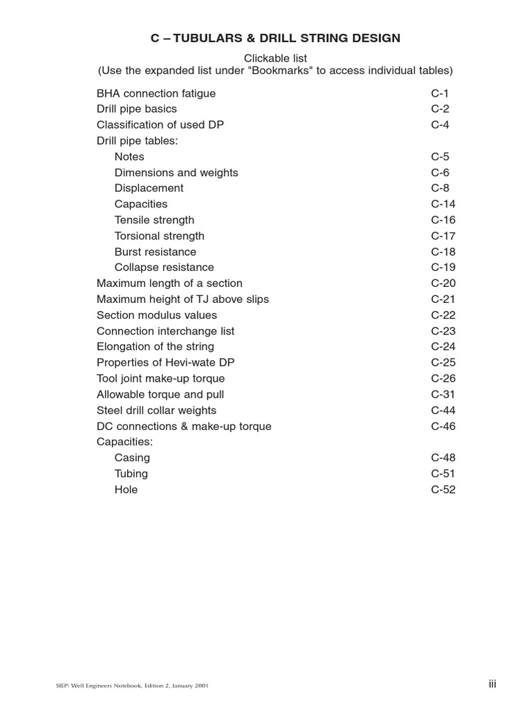 Drill pipe specifications have been taken from API Spec 5D, 4th Edition, August 1999.