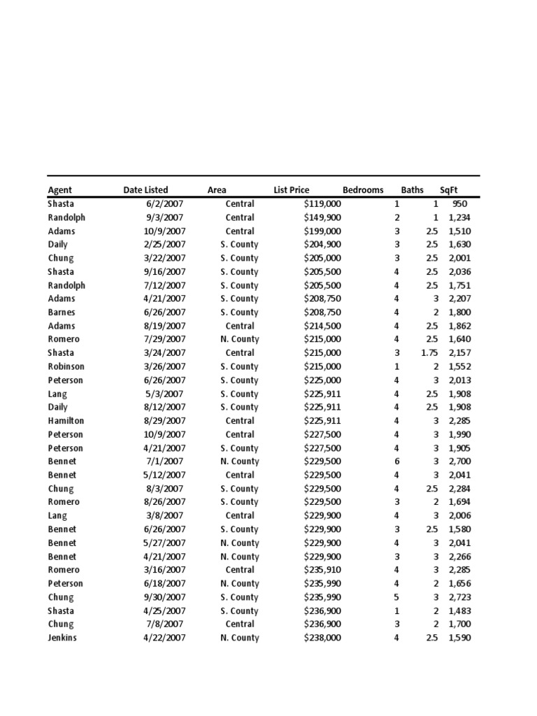 Agent Date Listed Area List Price Bedrooms Baths SqFt
