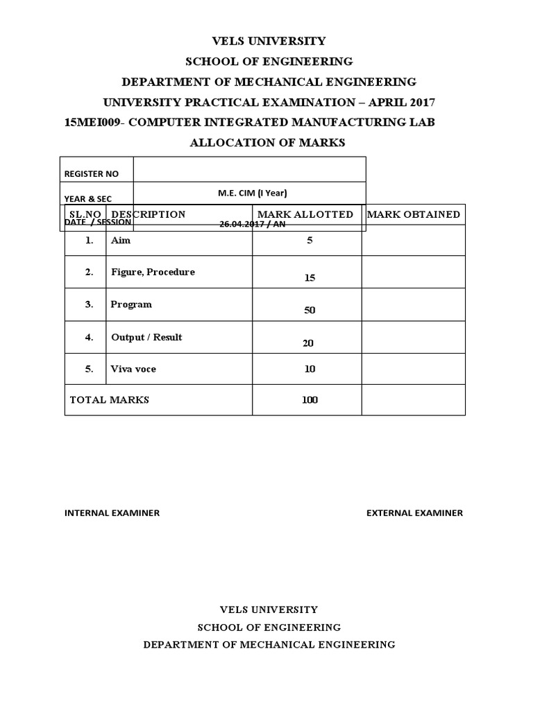 15MEI009- COMPUTER INTEGRATED MANUFACTURING LAB