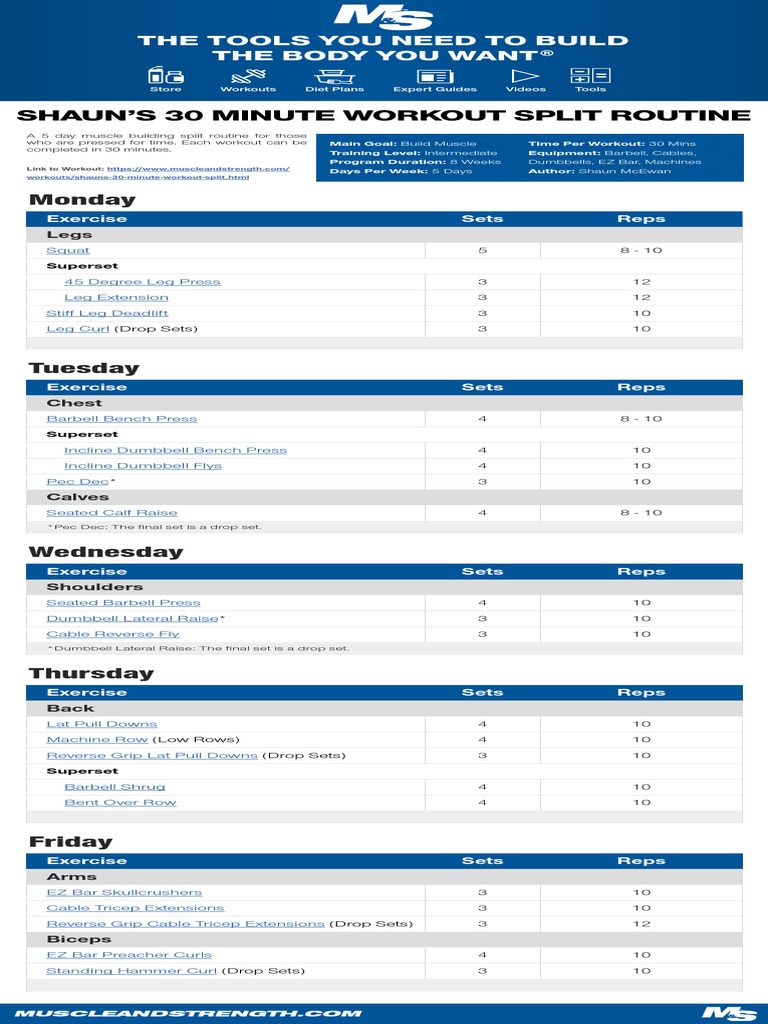 Link to Workout: https://www.muscleandstrength.com/ Days Per Week: 5 Days Author: Shaun McEwan