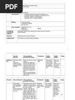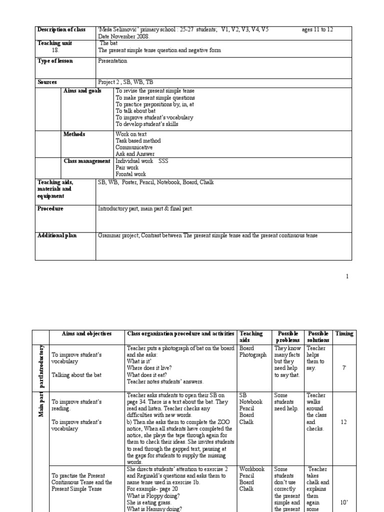 Aims and objectives Class organization procedure and activities Teaching Possible Possible Timing