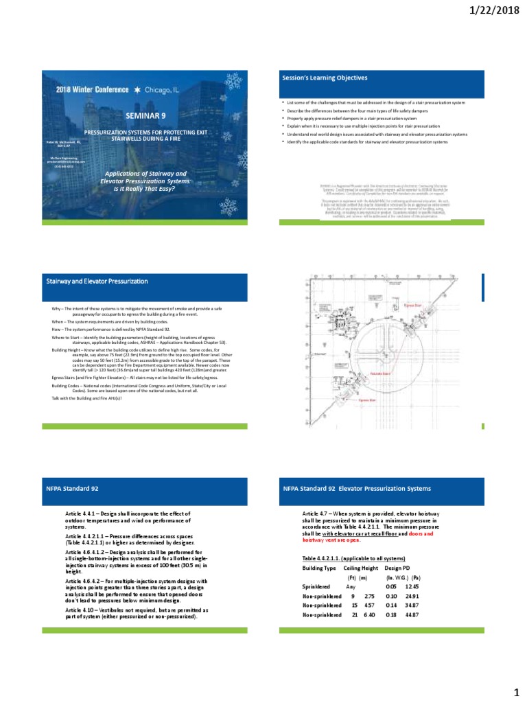 PRESSURIZATION SYSTEMS FOR PROTECTING EXIT • Understand real world design issues associated with stairway and elevator pressurization systems