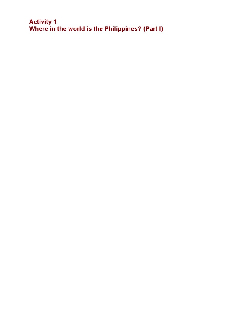 Where in the world is the Philippines? (Part I)