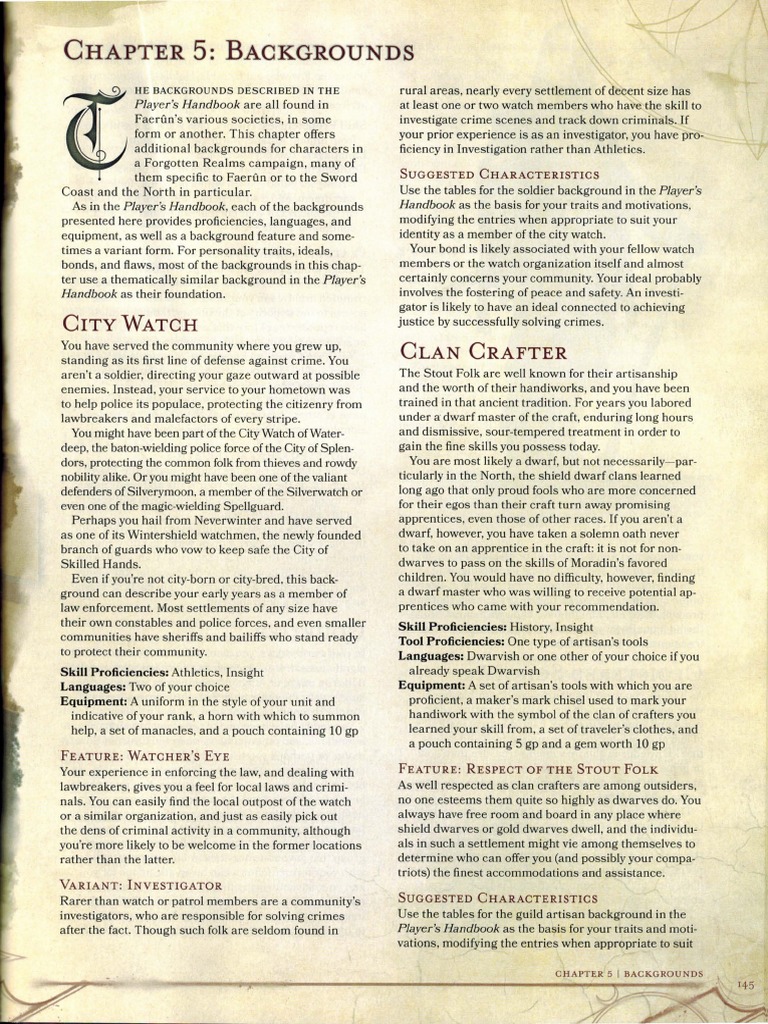 Forgotten Realms Character Backgrounds