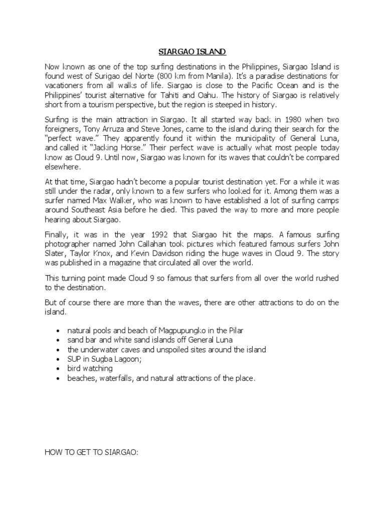 Philippines’ tourist alternative for Tahiti and Oahu. The history of Siargao is relatively