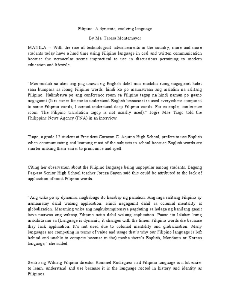 Filipino: A dynamic, evolving language