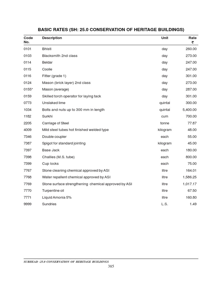Code Description Unit Rate
