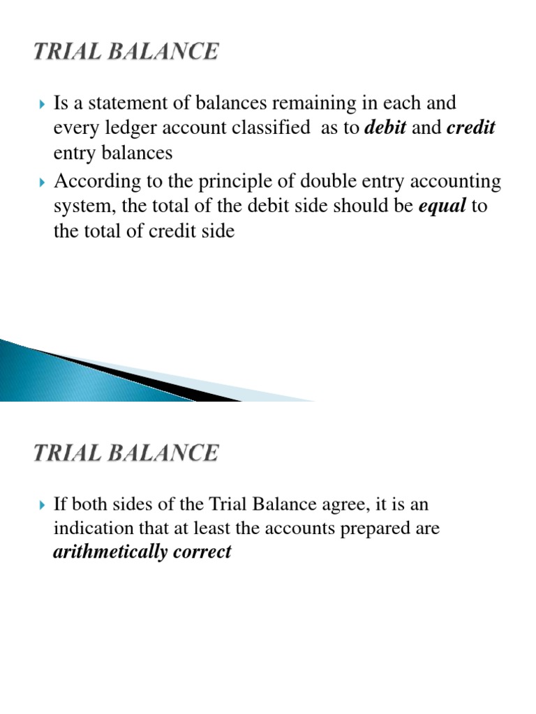 system, the total of the debit side should be equal to