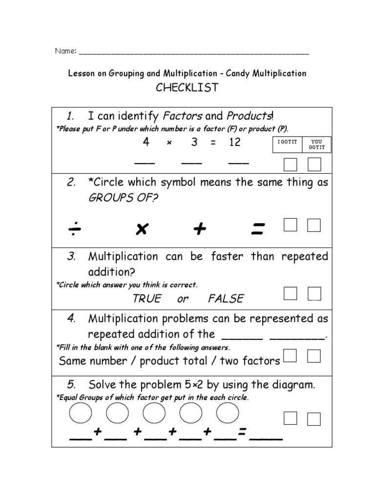 Lesson on Grouping and Multiplication - Candy Multiplication