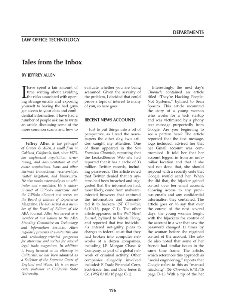 in-chief of GPSolo magazine and most likely, come from malware- allowing access to any previ-