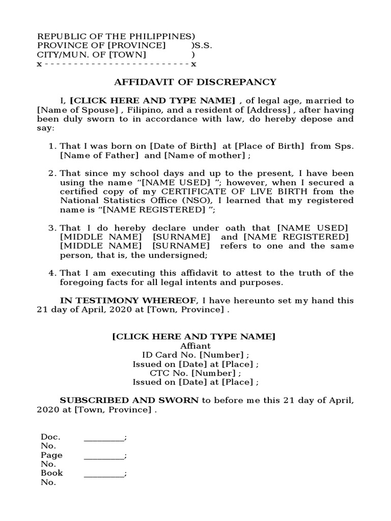 I, [CLICK HERE AND TYPE NAME] , of legal age, married to